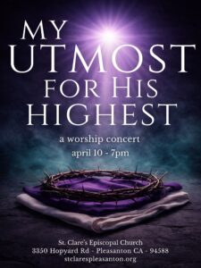 Easter Concert: My Utmost for His Highest, April 10, at 7 p.m. in the St. Clare’s sanctuary. An orchestra and our choir come together bringing all the joy and passion of the season.